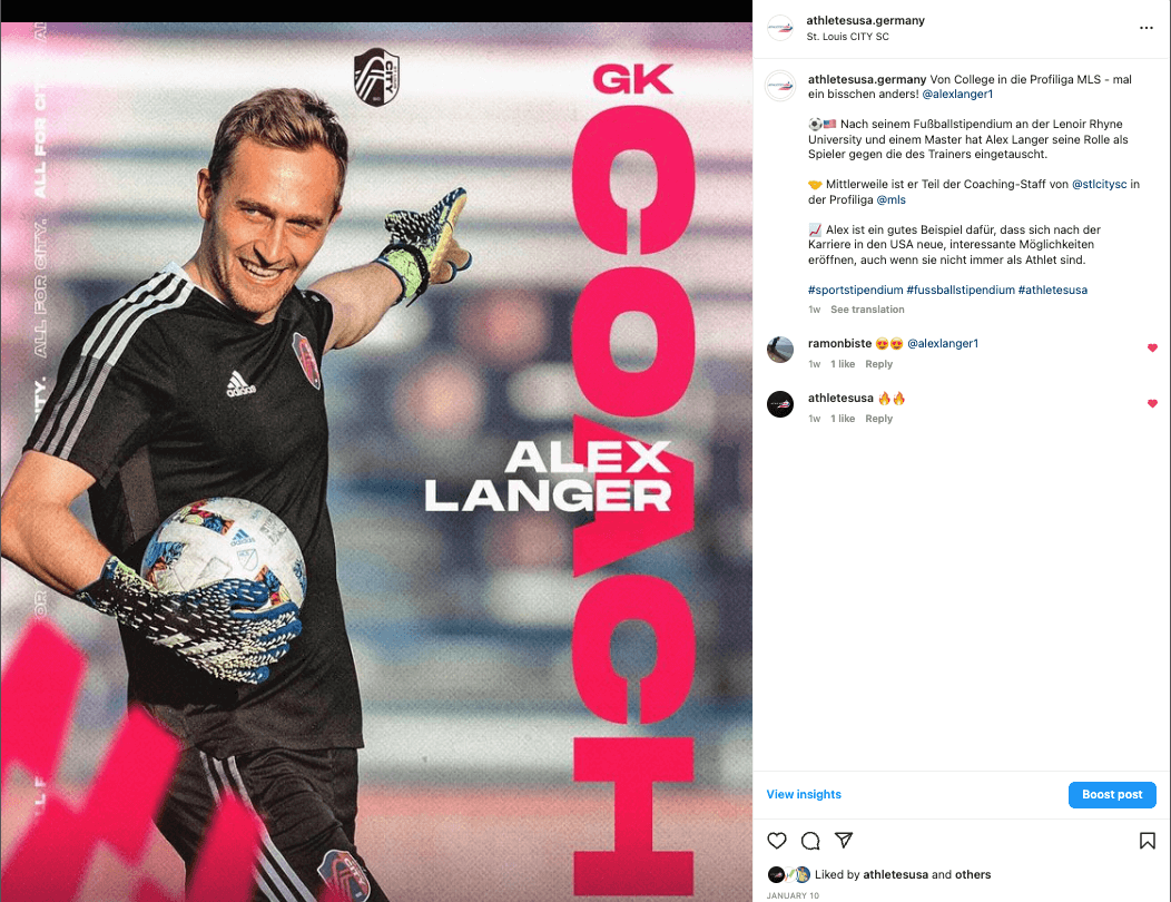 St. Louis City SC ist ein neues Team in der Major League Soccer (MLS). Alex Langer, ein ehemaliger Spieler von Athletes USA, ist jetzt Teil des Trainerstabs des Teams und verantwortlich für die Torhüter.